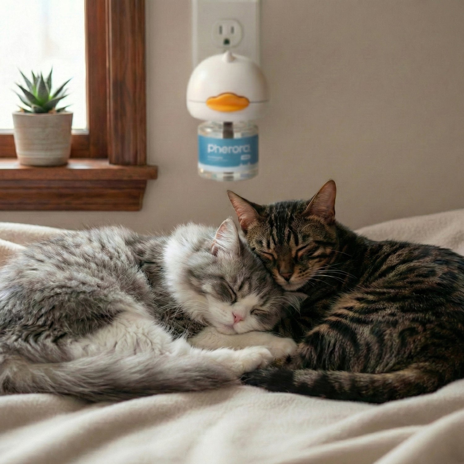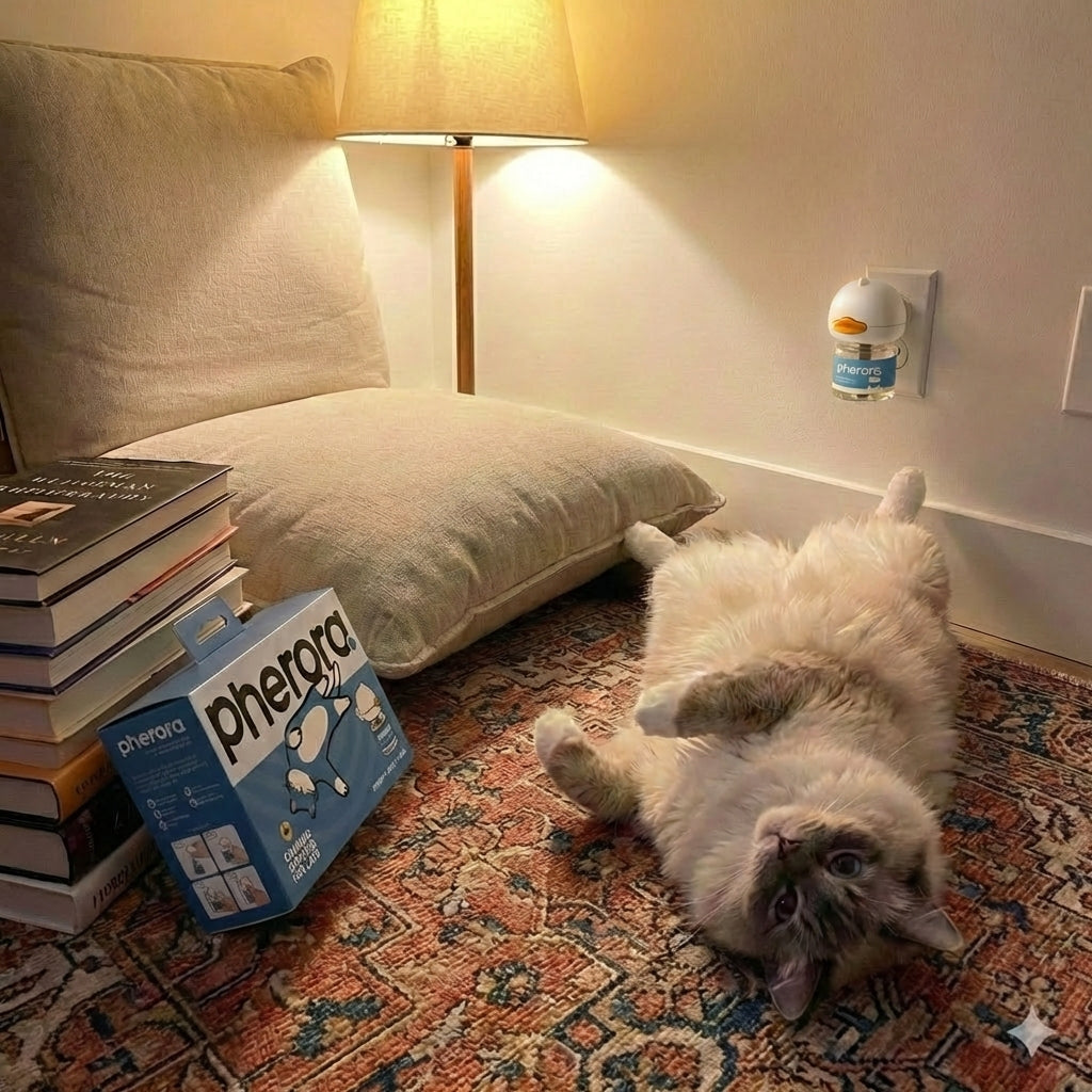 "Pherora mimics natural calming messages to reduce feline stress at the root. It is the safest, non-drug solution for environmental changes, moving, or multi-cat tensions."