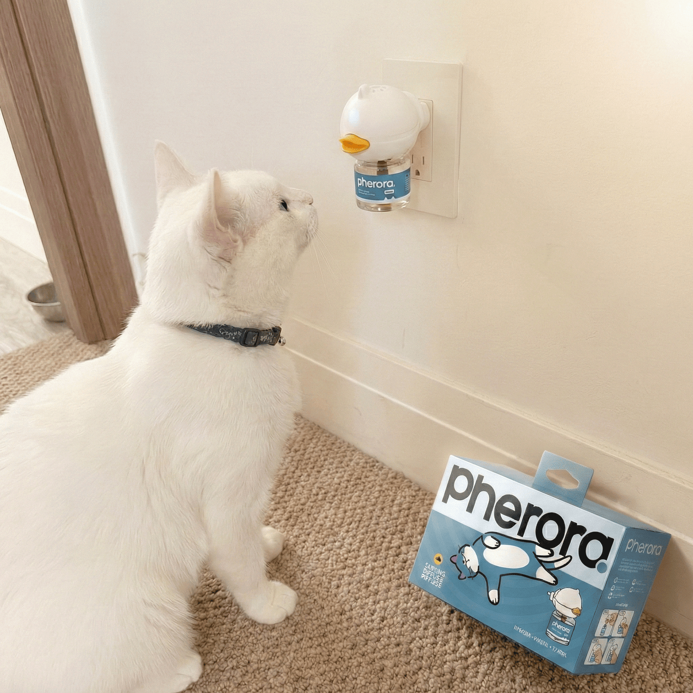Pherora is a plug-in calming diffuser that supports a calmer home environment through pheromone-based signals—quietly, continuously, and drug-free.